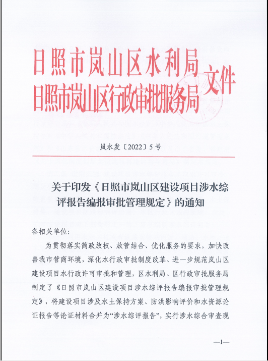二是推行“三合一”涉水綜評(píng)報(bào)告。為優(yōu)化營(yíng)商環(huán)境,嵐山區(qū)水利局會(huì)同嵐山區(qū)審批局聯(lián)合印發(fā)《日照市嵐山區(qū)建設(shè)項(xiàng)目水影響評(píng)價(jià)編制指南(試行)》和《日照市嵐山區(qū)建設(shè)項(xiàng)目水影響評(píng)價(jià)報(bào)告編報(bào)審批管理規(guī)定》,在全市創(chuàng)新性的將涉水相關(guān)的水土保持、水資源論證、防洪影響評(píng)價(jià)“三合一”改革成“涉水綜評(píng)報(bào)告”,實(shí)行“三合一”審批后,將原有的三個(gè)評(píng)審環(huán)節(jié)合并為一個(gè)評(píng)審環(huán)節(jié),一個(gè)項(xiàng)目在涉水審批上不再多次評(píng)審,將節(jié)省三分之二審批時(shí)間,既為企業(yè)減少時(shí)間成本,又為企業(yè)減少制度成本,從根本上達(dá)到為企業(yè)減負(fù)的效果。